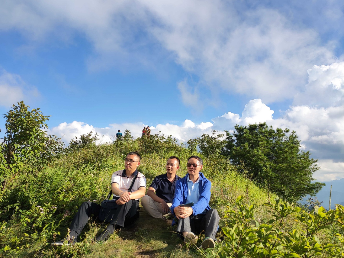 小车沿河鱼乡场镇核桃坝迤逦而上,沿途山势险峻,巍峨雄峙,草木葳蕤,风光秀丽, “路从树木荫中转,云向山涧缺处开”。上次来河鱼,只走到丝棉园处,因路未修通而半路折回。如今,道路畅通,小车继续上行,2000米、2200米、2400米……白云伸手可摘,蓝天触手可摸?!肮沤翊肆?,高下势峥嵘。”浩浩八百里秦川撞入眼帘,绵绵川渝烟云尽收眼底,令人顿生豪放之情。