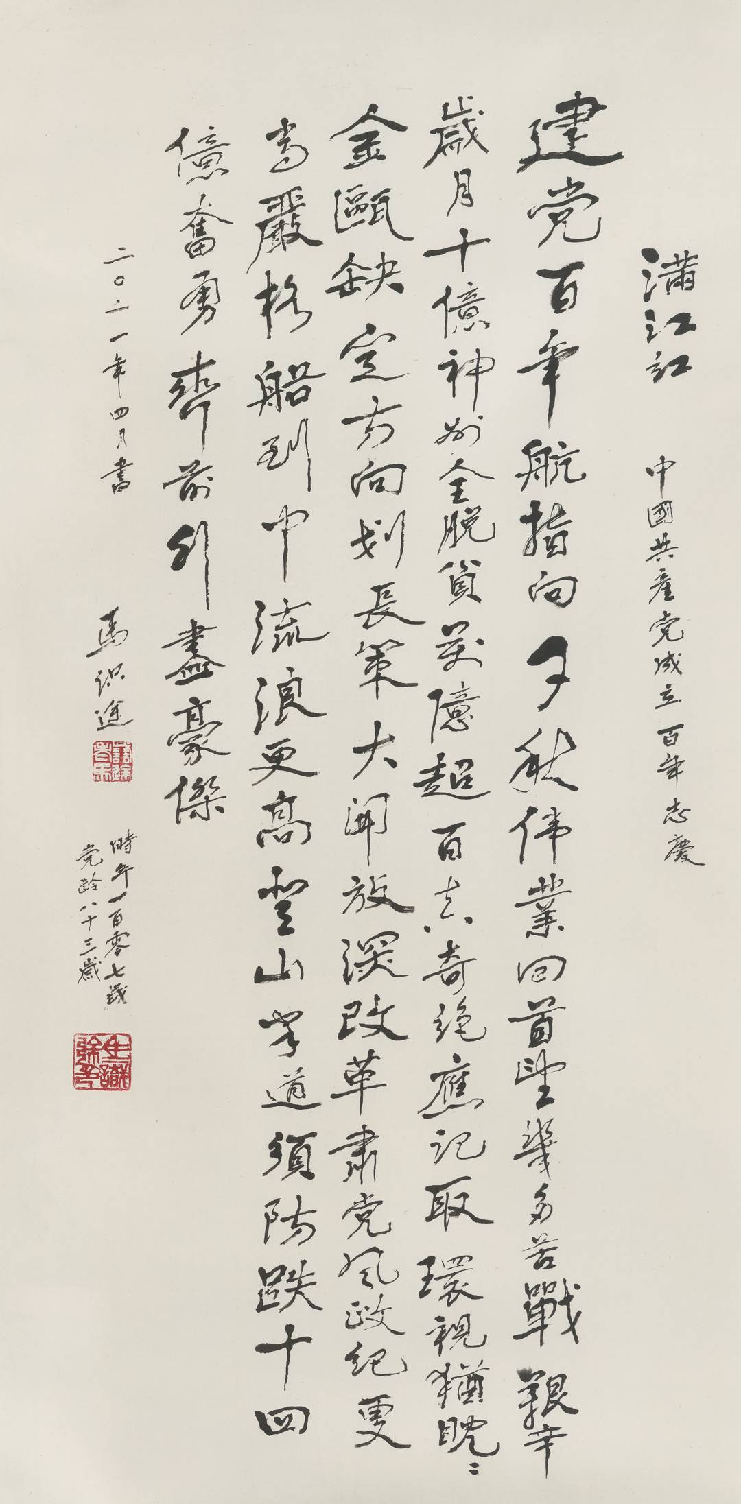 时光荏苒。转眼83年过去了。如今已进入107岁的马老,面临即将到来的建党百年诞辰,岂能不内心激动,作诗挥毫?