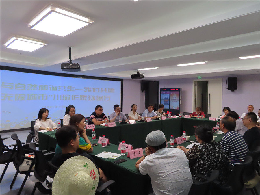 参观结束后,采风团还前往北碚区新时代文明实践生态文明分中心开展了座谈交流,对北碚在建设“无废城市”方面取得的成绩进行了详细了解和沟通,并就生态文明建设与文学创作的方向和发展进行了深入探讨。