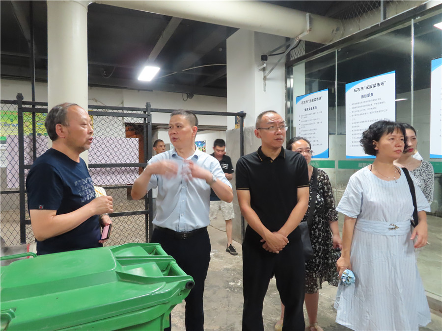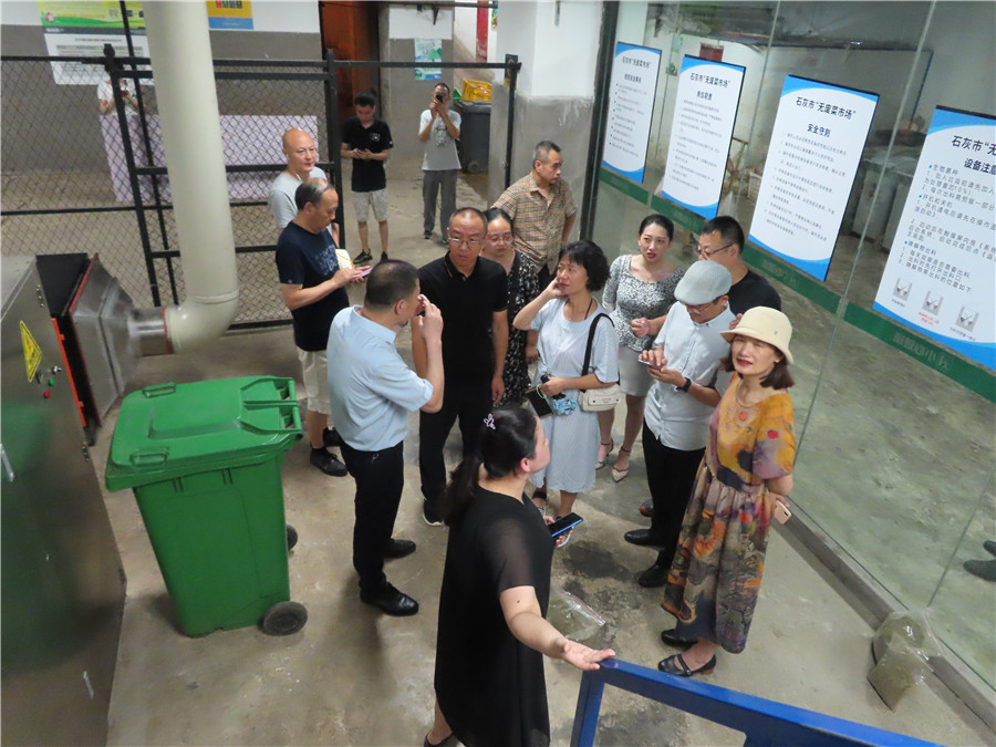 随后,采风团又深入渝中区石灰市参访无废菜市场建设情况。在亲眼目睹一大箱蔬菜垃圾被倒进银白色的机器,经过处理后变成了一袋袋绿色的肥料后,大家对石灰市菜市场解决了 “脏、乱、差”、果蔬垃圾收运困难、臭气扰民等突出环境问题,创新开展石灰市菜市场“无废城市细胞”创建,就地处理菜市场产生的垃圾,并实现环境、经济、社会效应多赢,且成功创建全市首个“无废菜市场”连声赞叹道,“这个办法好,真是太先进了!”