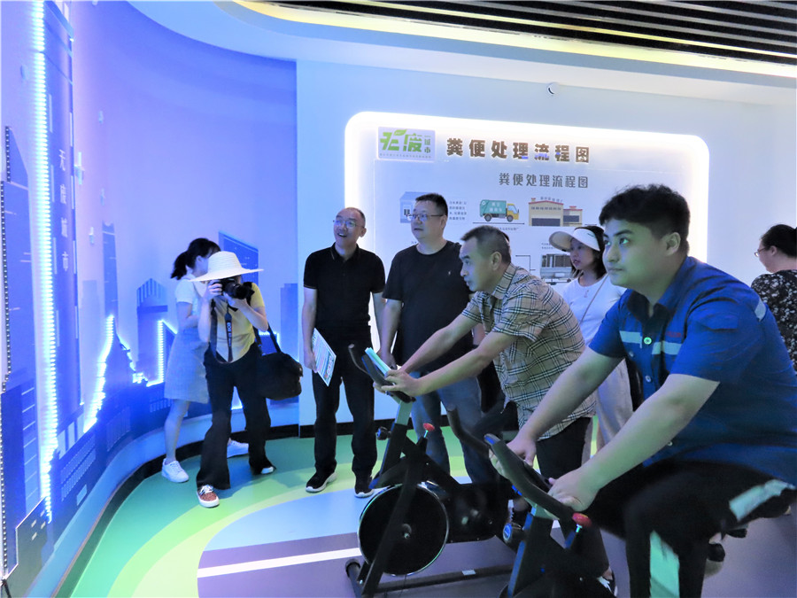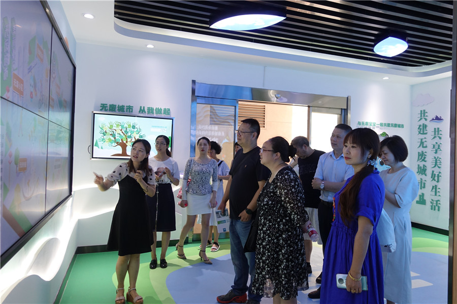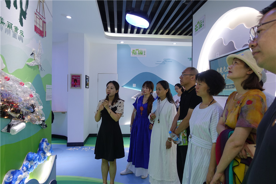 24日,采风团又赶赴重庆市黄沙溪无废城市宣传教育基地,详细询问了渝中区无废城市建设工作开展、无废细胞建设等情况,并通过互动性、体验性的游戏和参观,了解到绿色生活、环保出行等无废理念。