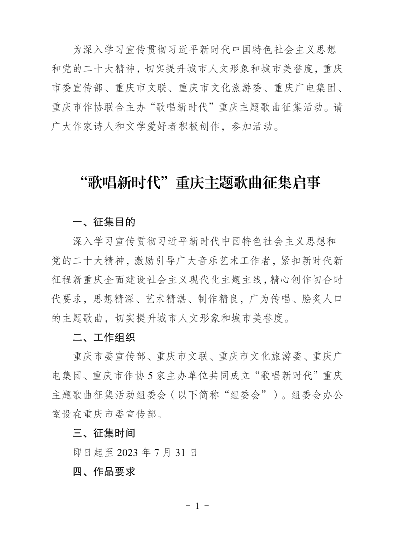 “歌唱新时代”重庆主题歌曲征集启事.docx