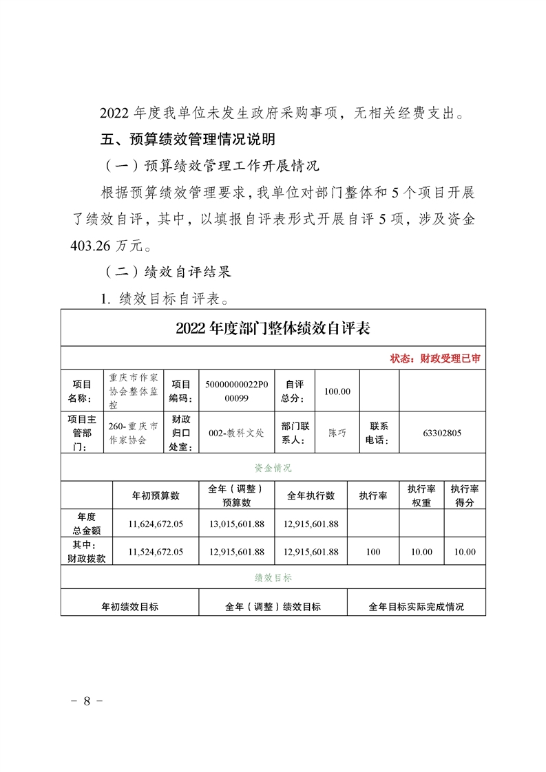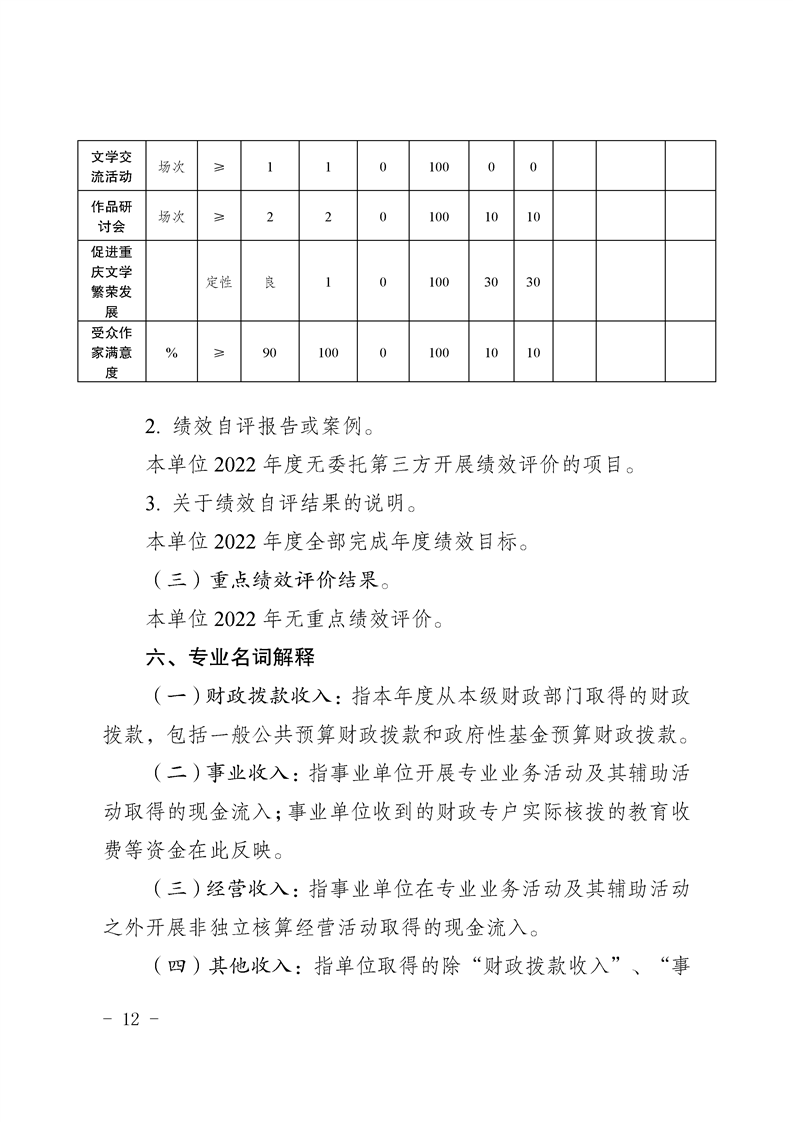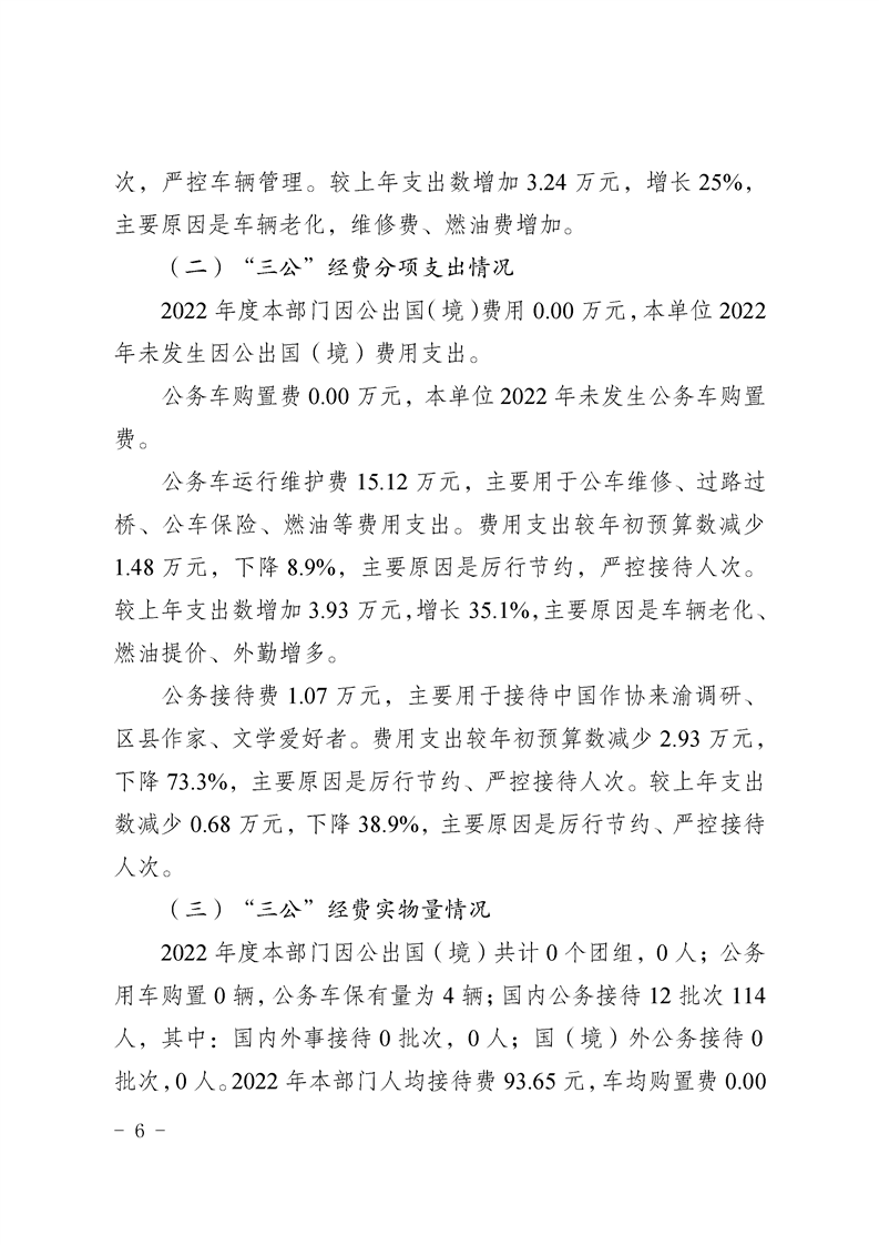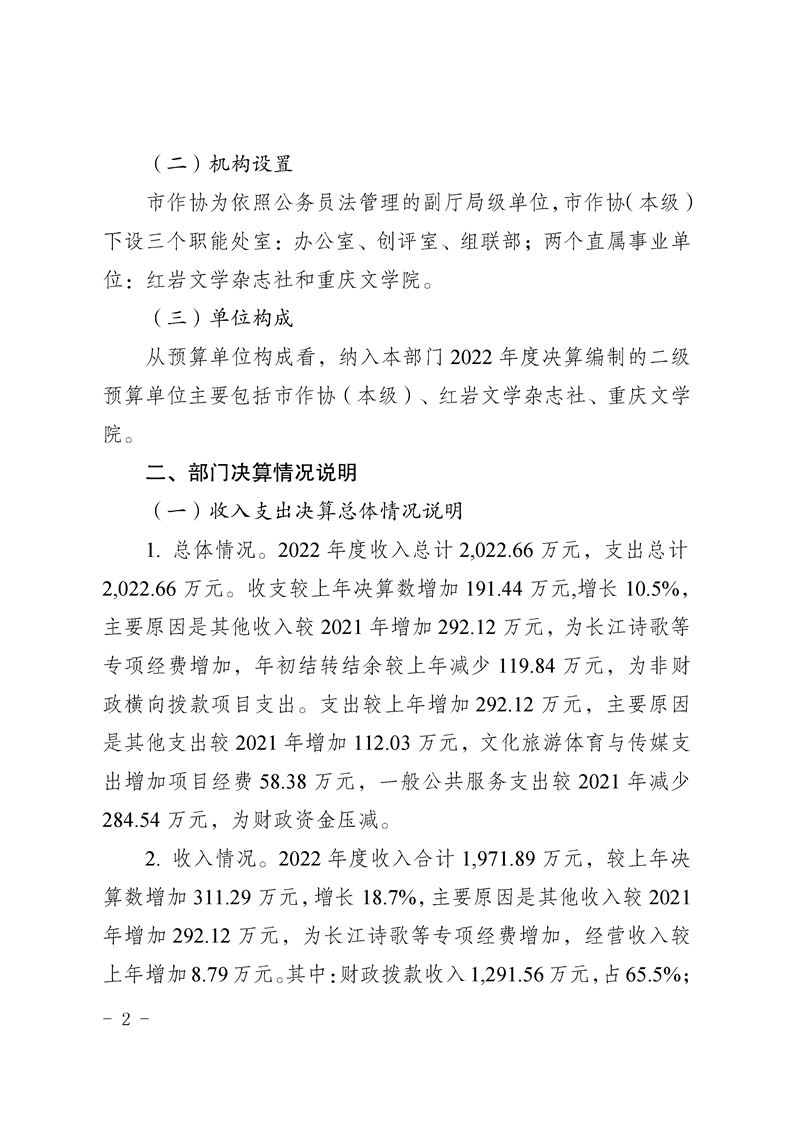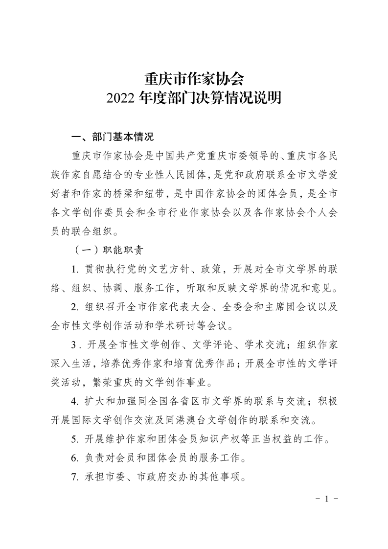 重庆市作家协会2022年度部门决算情况说明