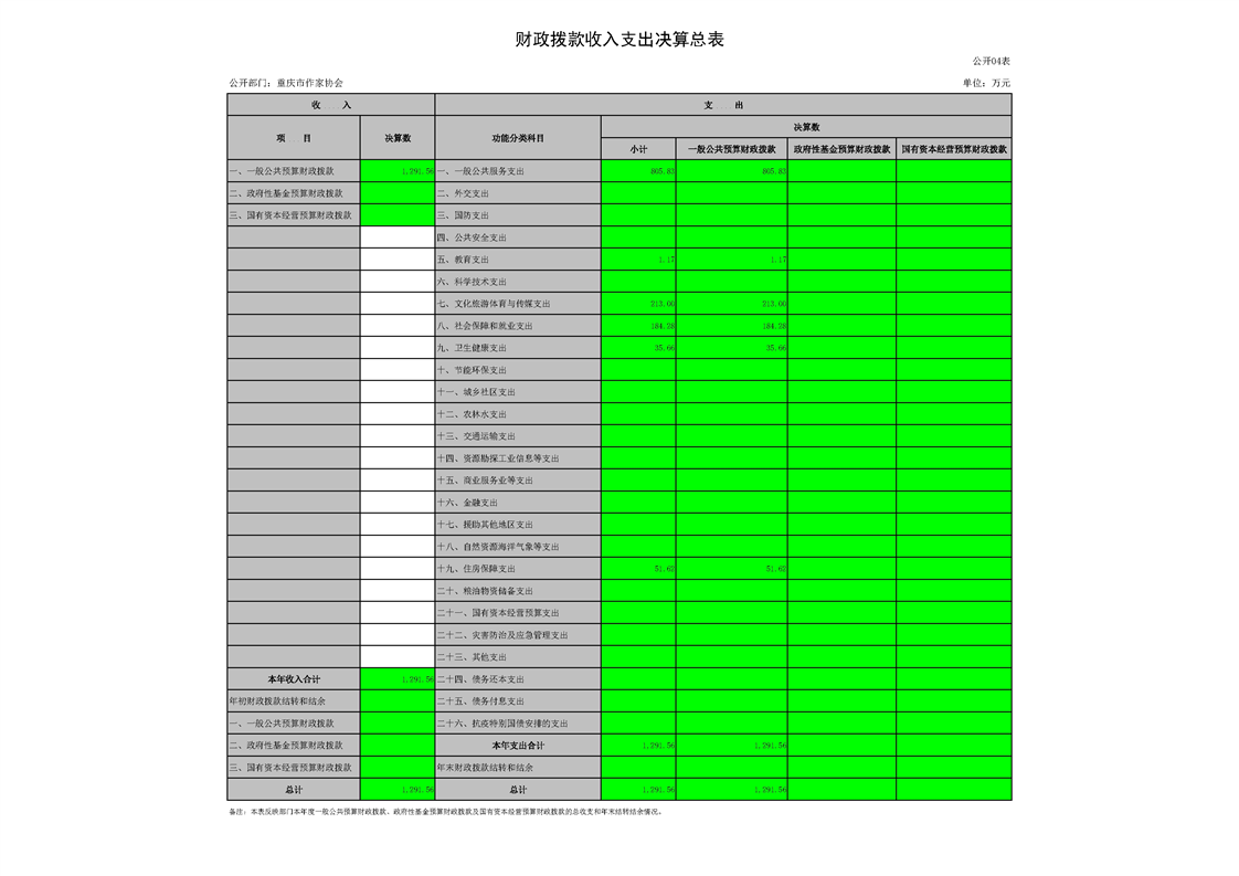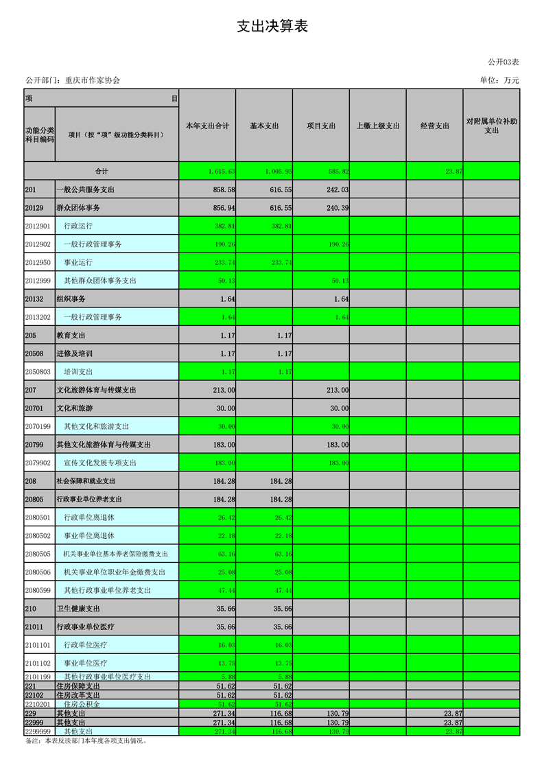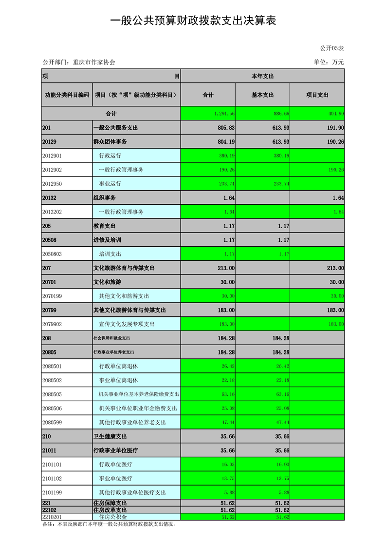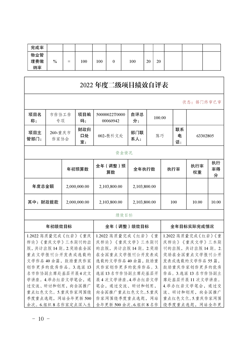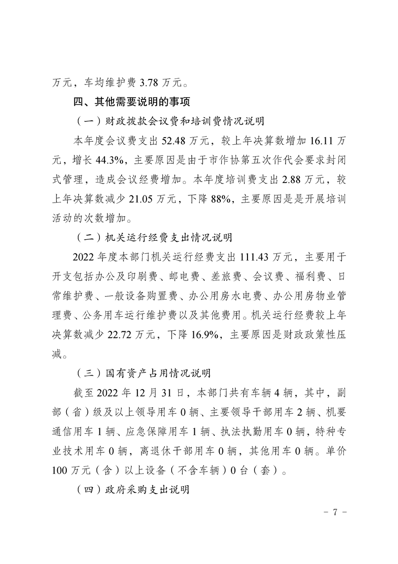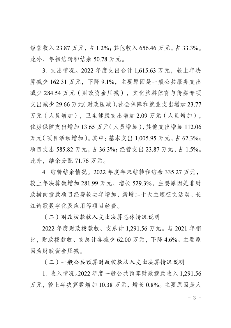 重庆市作家协会2022年度部门决算情况说明