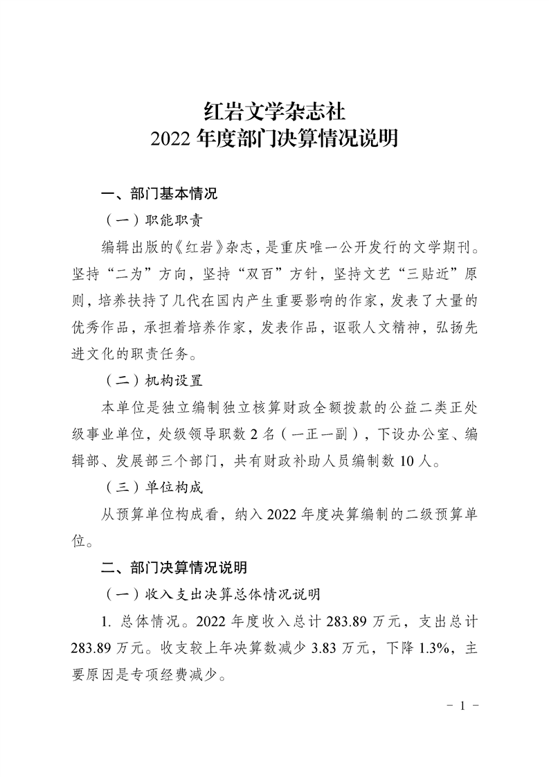 红岩文学杂志社2022年度部门决算情况说明