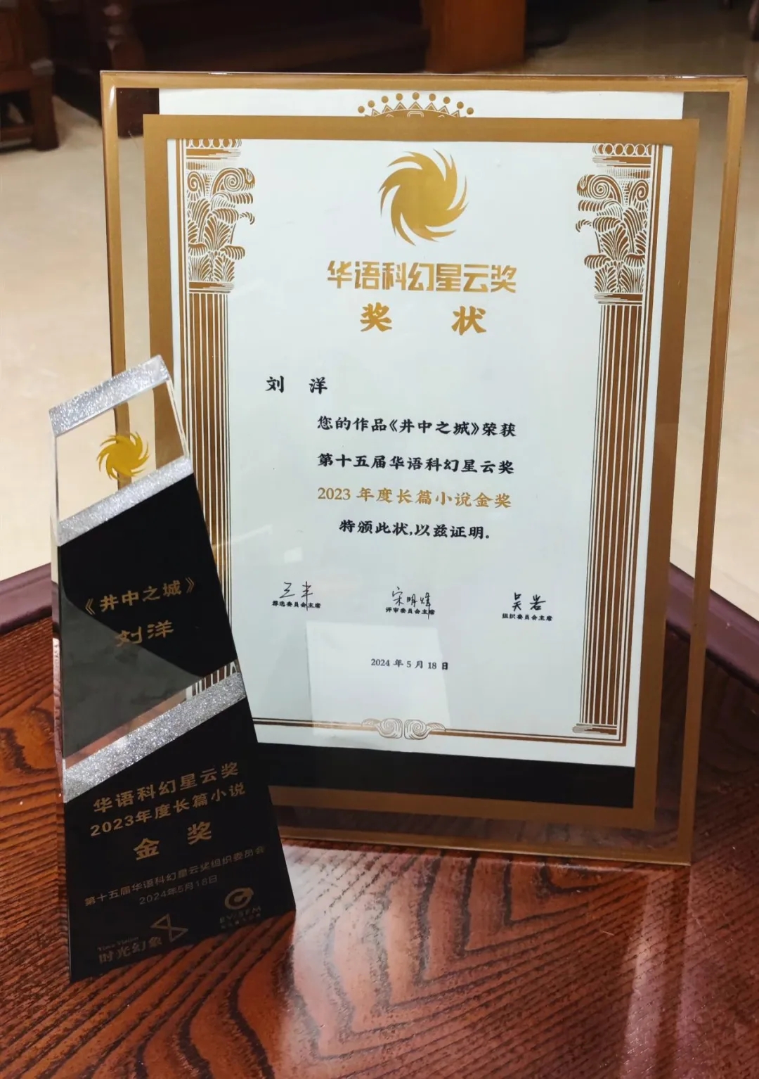 5月18日,在成都科幻馆雨果厅举行的第十五届华语科幻星云奖颁奖典礼上,重庆大学副教授、重庆科幻作家刘洋凭借作品《井中之城》荣获华语科幻星云奖长篇小说金奖。