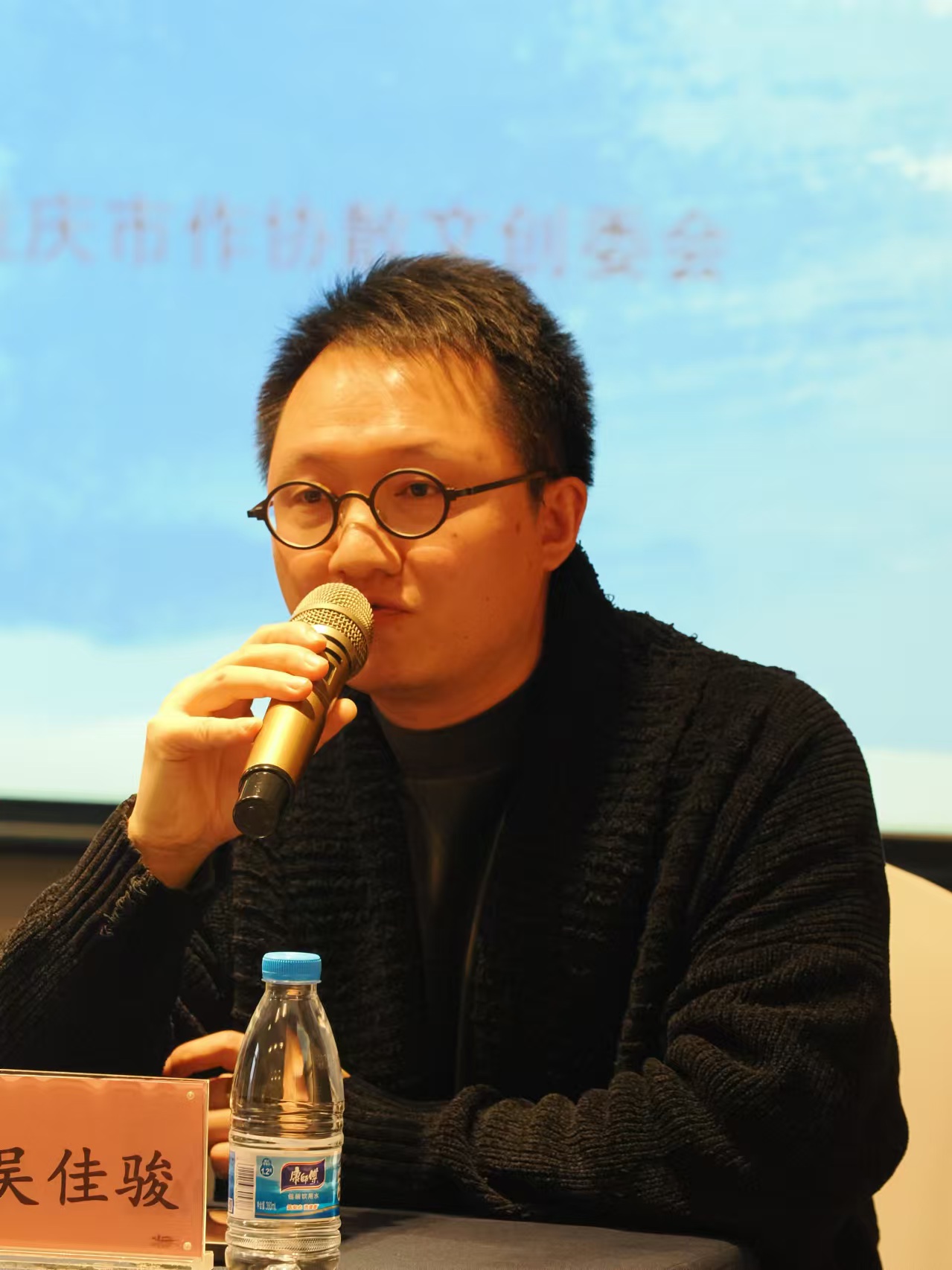 市作协散文创委会副主任、《红岩》杂志编辑部主任吴佳骏认为散文需要每个个体和群体共同的创新,在观念上要有意识,技法上要有突破,要有艺术性,时代性,当下性,用现在的思维、语感、强调去书写,圆融、通透,与前辈和同辈区别开,不要同质化。散文犹如卸妆后与自己的对谈,见自己,见众生、见天地。自己什么样,散文就是什么样。