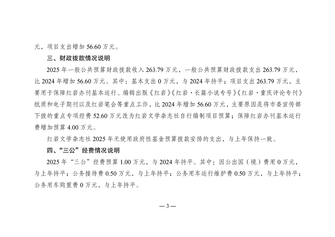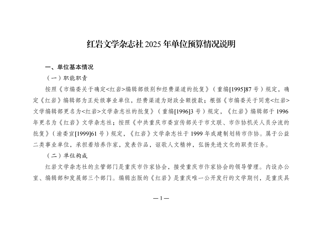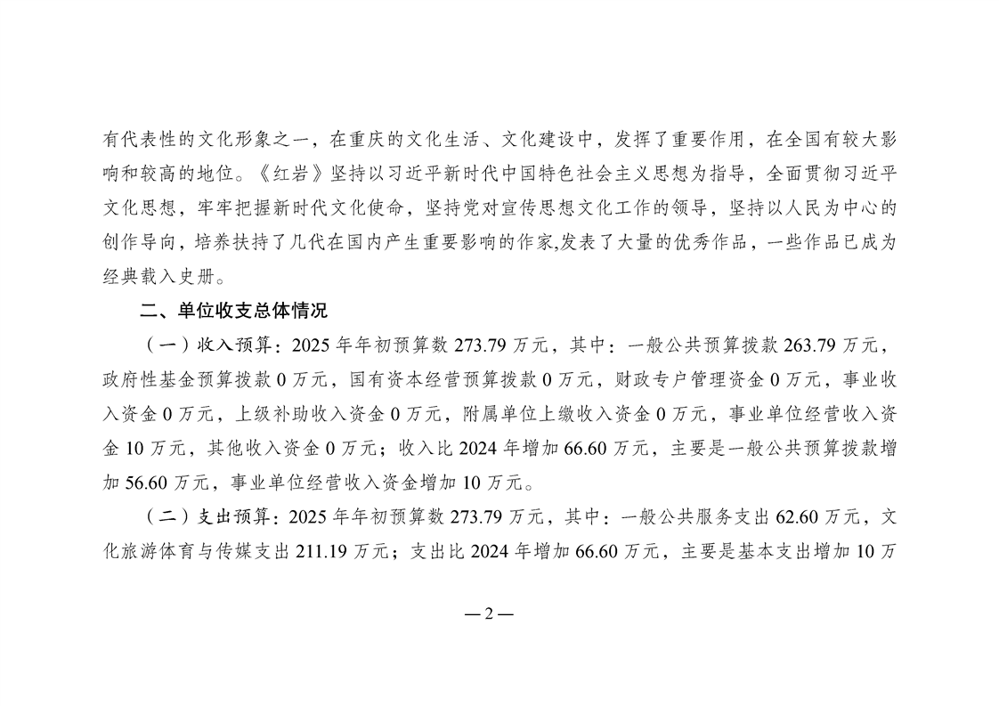 红岩文学杂志社2025年单位预算情况说明
